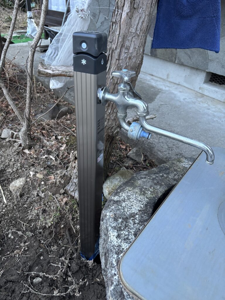 不凍栓付きの新しい水栓になりました 今回は既存の蛇口を付け直して使います↓